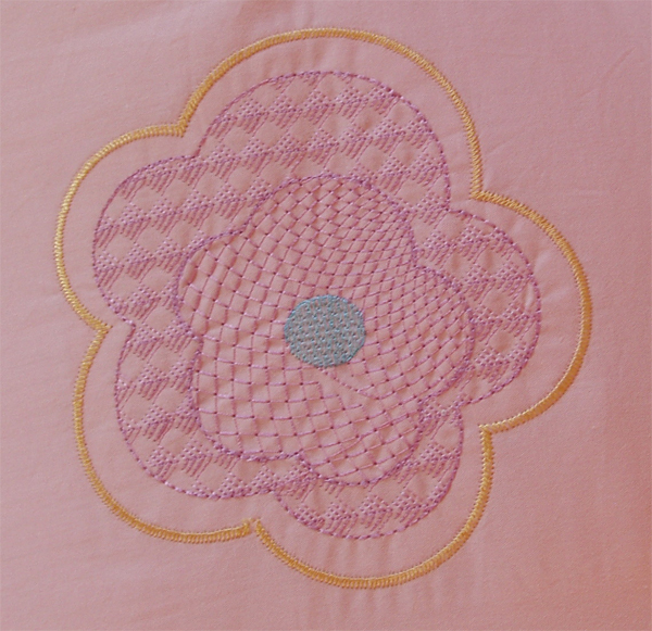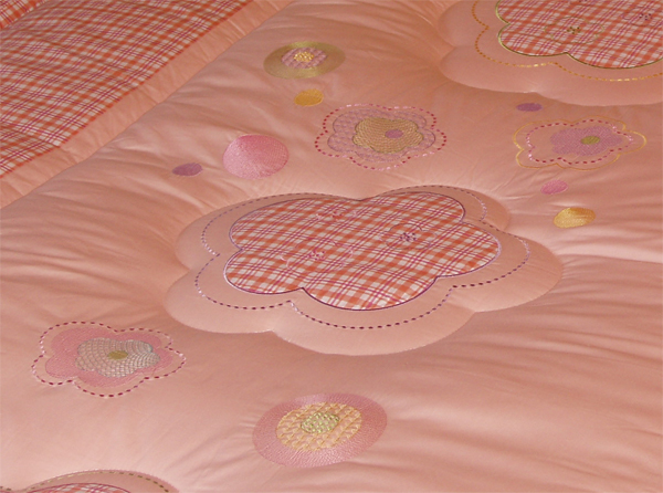 Farbe ist apricot nicht pink, kommt unter der Stickerei schlecht rüber.