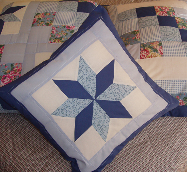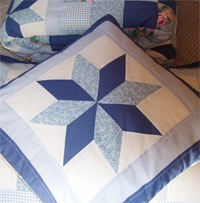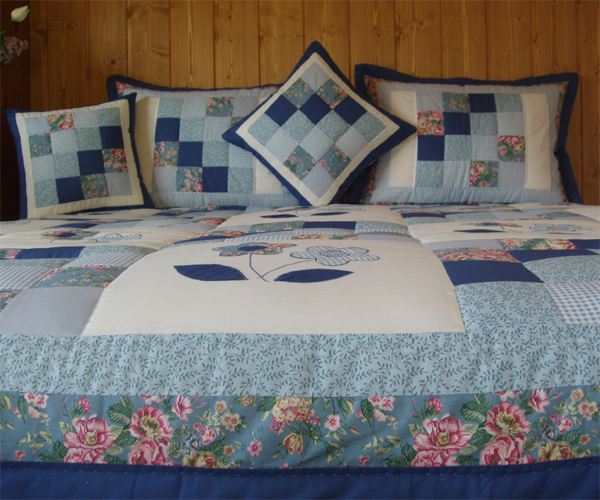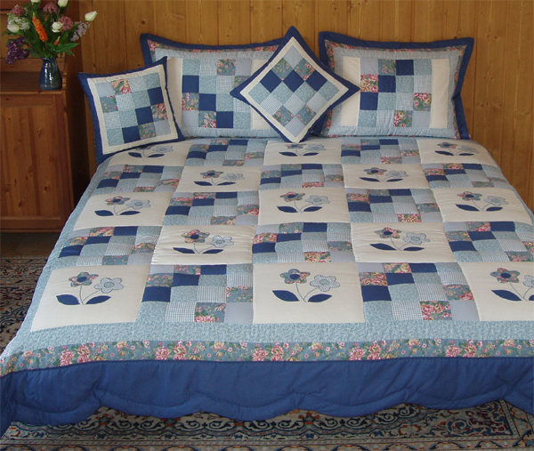 Das Blau Rosa Quilt Set gibt es auch mit Patchwork-Sternen anstelle von Blumen: