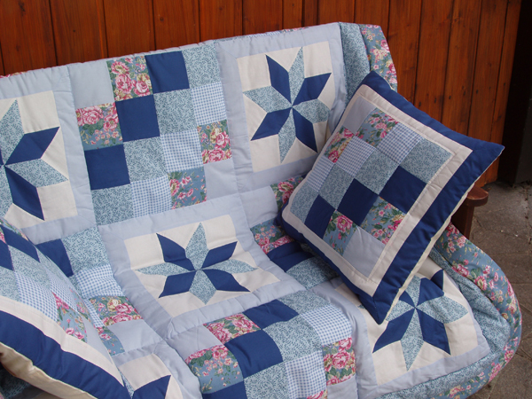Patchwork Quilt Einzelbett Sofadecke Blau Rosa: